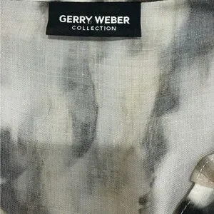 Stylish abstract blouse by Gerry Weber. Features a mix of black, cream, and tan. Perfect for versatile wear and lightweight material.