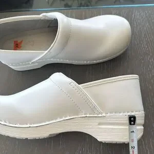 These Dansko XP white clogs feature a sleek, minimalist look. They offer exceptional comfort and practicality for both casual and professional settings.