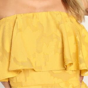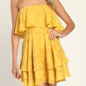 Lulus True Lover Mustard Yellow Burnout Floral Strapless Mini Dress Womens M NWT