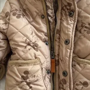 Disney Mickey Mouse NWOT Kids Tan Quilted Lined Jacket with Hood 12 M