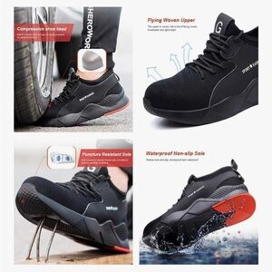 Safety Work Sneakers Outdoor Lightweight Breathable Non Slip Puncture Proof. Comfortable to wear for long periods of time. With steel toes, only weight 2.6 pds.