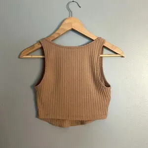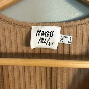 Princess Polly Koda Sleeveless Top, Sz 2, Brown, Tan, Ribbed Corset, V-Neck Tank