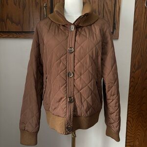 Vintage Talbots Brown Quilted Jacket Coat Size Large High Neck Bomber