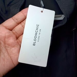 Brand new with tags BloomChic lightweight hooded jacket in classic black — elevated utility with a flattering silhouette.