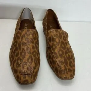 Stylish loafers with a bold leopard pattern. Comfortable and chic for any occasion.