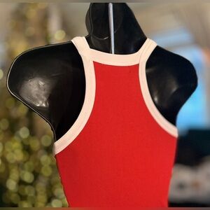 Chic Red Maxi Dress with White Trim