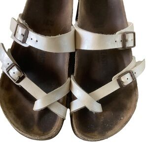 Birkenstock women’s Mayari beige leather strappy sandals Sz 37 US 7