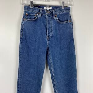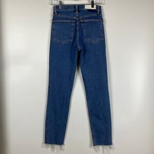Re/Done High-Rise Ankle Crop Jeans Raw Hem Button Fly Medium Wash Womens Sz 26