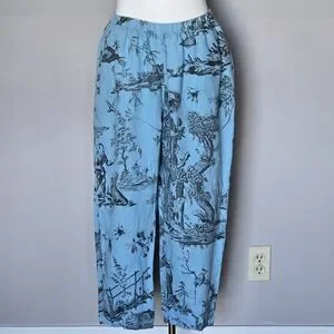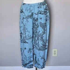 KLEEN 100% Linen Blue Toile Pattern Balloon Cropped Wide Leg Pants in wonderful condition.