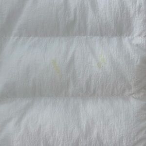 This jacket was hardly used and is in like new condition, however, there is a tiny discoloration area on the right chest - which isn’t seen unless you’re looking for imperfections. Please see (last) photo for details.