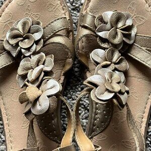 Boc gold flower sandals, butterfly soles, Size: US 9