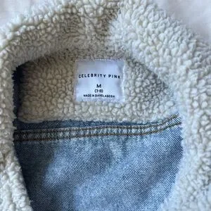 Stylish denim jacket with cozy sherpa lining. Perfect for casual wear.