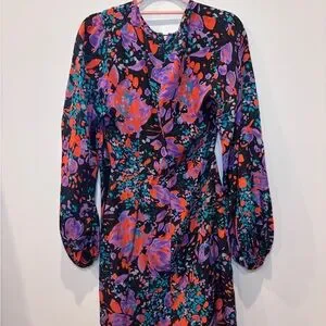 Elevate your wardrobe with this bold and statement-making Essentiel Antwerp floral mini dress, featuring a vibrant abstract floral print against a black backdrop. Known for their artistic prints and standout designs, Essentiel Antwerp delivers a fun yet sophisticated piece perfect for events or nights out.