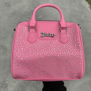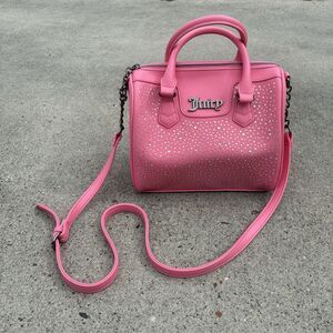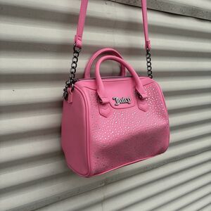 Juicy Couture Pink Embossed Heart Satchel Crossbody Bag Handbag Embellished Y2K