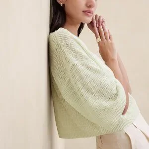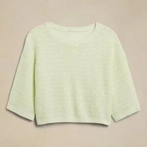 this linen sweater is knitted using a an open stitch that mimics the texture of true crochet. We crafted it from our favorite linen yarn, beloved for its luxurious softness and its ability to stay cool and crisp, even in heat and humidity.