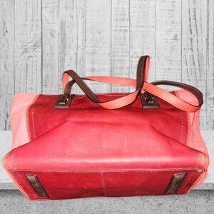 Vintage Fossil Red Leather Tote Shoulder Bag Colorblock Brown Trim