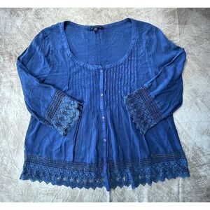 America Eagle Oufitter Blue Blouse With Crochet Sleeve And Blouse Hem Size L
