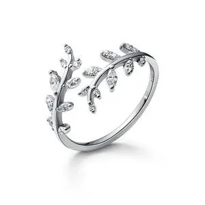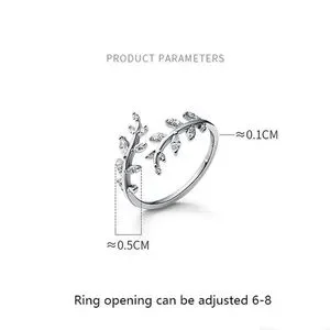 Leaf Wrap Ring Adjustable Sterling Silver Plated Zircon Stones