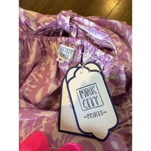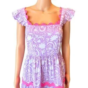 Pink City Prints Xanthe Dress Medium NWT Lilac Begonia Print Ruffle Rickrack