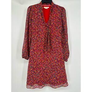 Boden Imogen Floral Tie Neck Long Sleeve Peasant Dress Red Size 4R