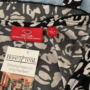 This elegant dress by Oscar de la Renta features a classic black and white color scheme, perfect for casual or work settings. The A-line silhouette is complemented by a v-neckline and long cuffed sleeves, offering a sophisticated yet comfortable fit. Ideal for cooler weather, this dress combines timeless style with modern elegance.