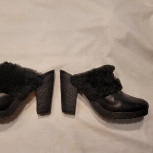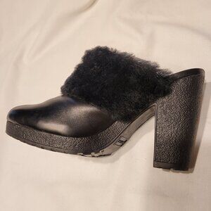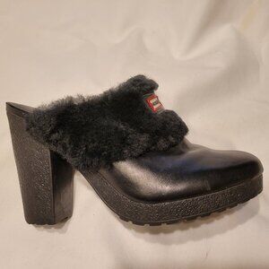 Hunter Brunson Black Leather Shearling Mule Platform Clogs Women's Size 9