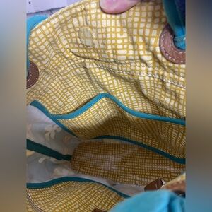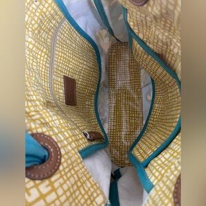 Fossil KeyPer Yellow Plaid Tulip Coated Canvas Purse Bag Tie Handles Key Charm