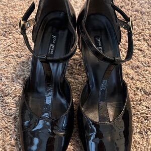 Paul Green München Black Patent Leather T- Strap Heels Sz 6.5