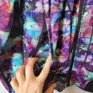 Athleta Watercolor Floral Zipper Front Bomber Coat Jacket With Zipper Pockets- S