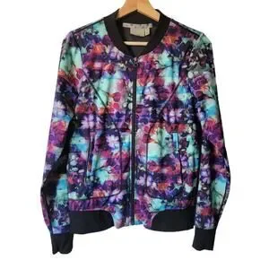 Athleta Watercolor Floral Zipper Front Bomber Coat Jacket