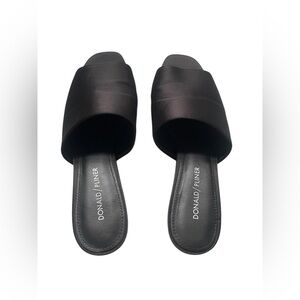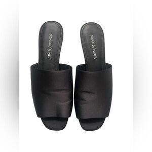 Satin Mules Black Slip On Slides with a 2.5" Heel by Donald Pilner 7.5