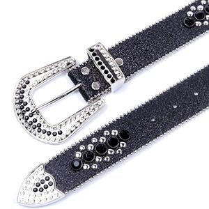 Womens Black & Silver Western Cowboy Moto Studded Skull Rhinestone Bling Belt, size Large - Women's Fashion Bling Diamond Belt