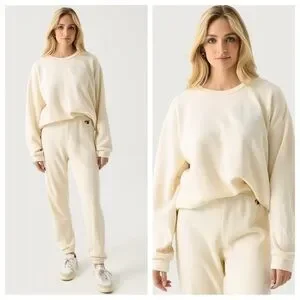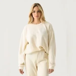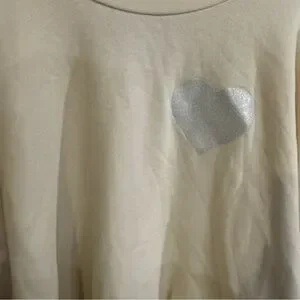 Aviator Nation Glitter Heart Crewneck Pullover Sweatshirt in Natural