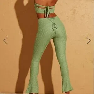 Oh Polly Zuni Lace Up Back Petite Trousers in Green