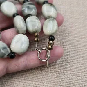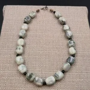 18 Inch Feather Gray Calcite Stone Chunky Necklace B1000