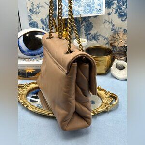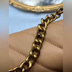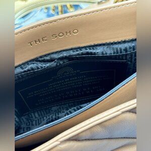 🆕 KURT GEIGER LONDON 🧿 NWOT Large Quilted Leather Soho Shoulder Bag, Camel