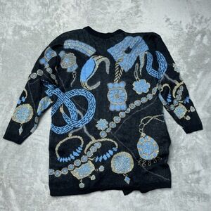Vintage Cervelle Women's L Cardigan Black Wool Blend H1105
