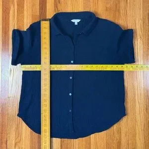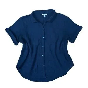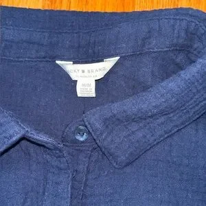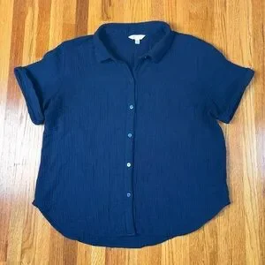 Lucky Brand Cotton Gauze Button Down Top Medium Navy Blue