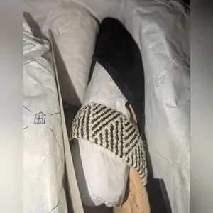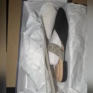 Birdies Swan Black Cuff Black and Cream Patterned Mules Size 7