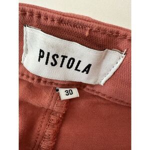 Elevate your denim game with these Pistola Jeans Stretch Packets. The peach-colored jeans are made of a cotton blend denim fabric with a medium wash that gives a vintage feel. The jeans have a high-rise waistline and a straight leg fit that flatters any body type. The zipper and button accents add a touch of rock and bohemian vibe to the overall look.