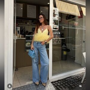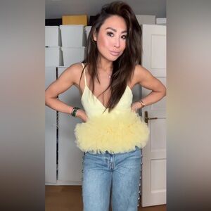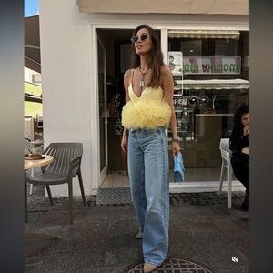 ZARA STRETCH TULLE VOLUMINOUS HEM TOP