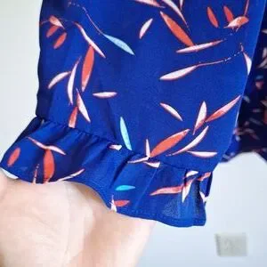 Banana Republic Ruffle-Hem Swing Shift Blue Long Sleeve Dress Size M