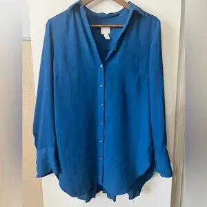 Stylish and classic Chico’s blouse in a rich blue tone featuring elegant pleated details on the back for a flattering, flowy silhouette. Perfect for work or casual wear comfortable, timeless, and easy to style.