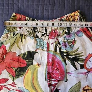 Tahari Tropical Fruit Print Linen-Blend Wide Leg Pants Size Lg
