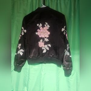 3x1 NWT Black Bomber Jacket with Pink Floral Embroidery Medium 20 PTP