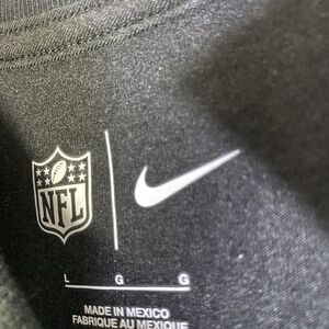 The Nike Atlanta Falcons NFL Crucial Catch Shirt Tee is a men's size large officially licensed shirt featuring the colors of the Atlanta Falcons. This shirt is perfect for fans of the team and the NFL, showcasing their team pride and support. Made by Nike, this shirt is designed for comfort and durability, making it a great addition to any football fan's collection of apparel.