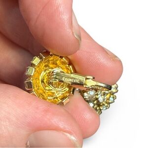 Vintage Hattie Carnegie Gold Crystal Encrusted Drop Clip On Earrings
