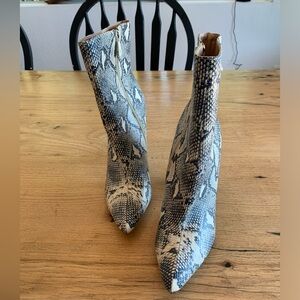 Pretty Little Thing Mid Calf Snake Print High Block Heel Bootie Women’s 6 Prelov