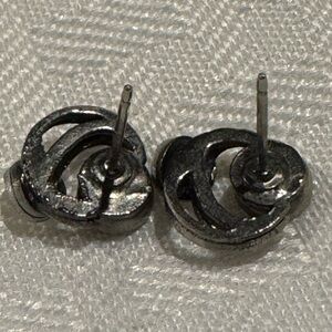 Christophe Poly geometric two-tone Stud earrings Blue Stone Gold Tone accent