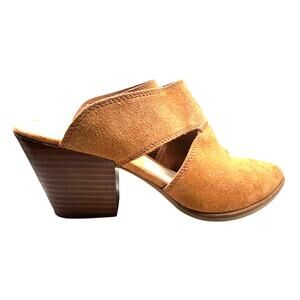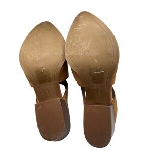 These stylish mules from Dolce Vita feature a sleek pointed toe and a wide V-shaped opening that adds a modern touch. Made from soft suede in a warm tan color, they offer both comfort and sophistication for any occasion. Excellent used condition